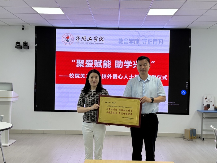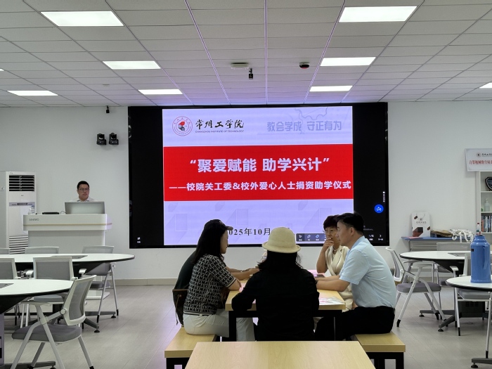 10月10日,常州工学院计算机学院举行“聚爱赋能 助学兴计”捐资助学仪式。为凝聚社会爱心,助力青年学子成长成才与学校教育事业高质量发展,学校和计算机学院两级关工委发挥社会资源优势,搭台牵线校外爱心人士——邵艾琴女士共筑助学梦。
