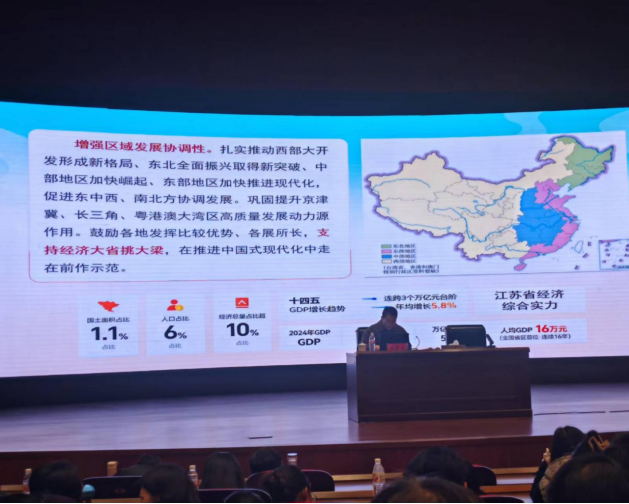 授课中,王教授围绕三大核心内容深化解读:一是充分认清“十五五” 的历史方位与主要目标;二是精准把握该时期的战略任务与重大举措;三是强调坚持和加强党的全面领导这一根本保证。他还结合数据案例直观展现发展中的基础建设进展,让理论解读更具象、更接地气。