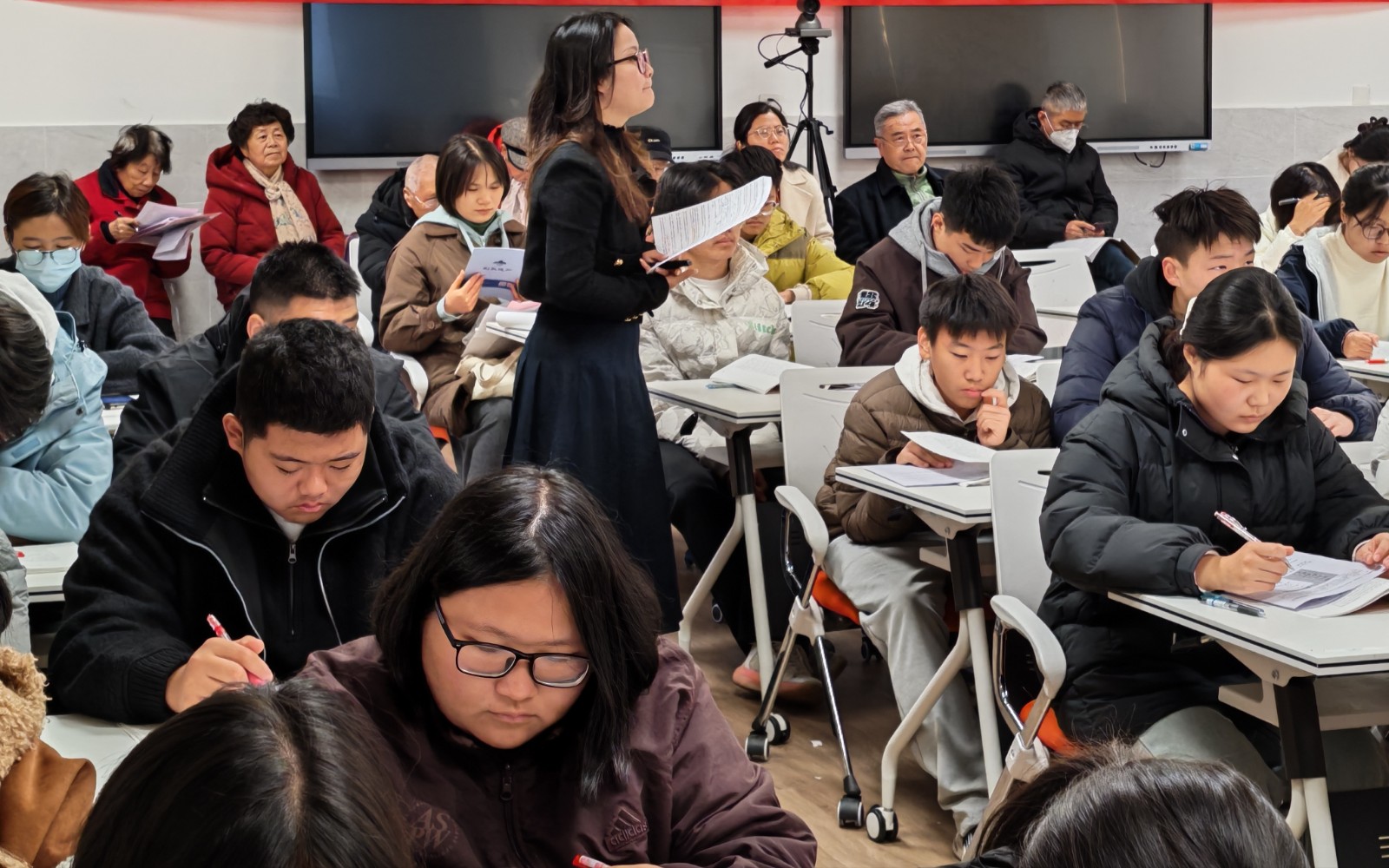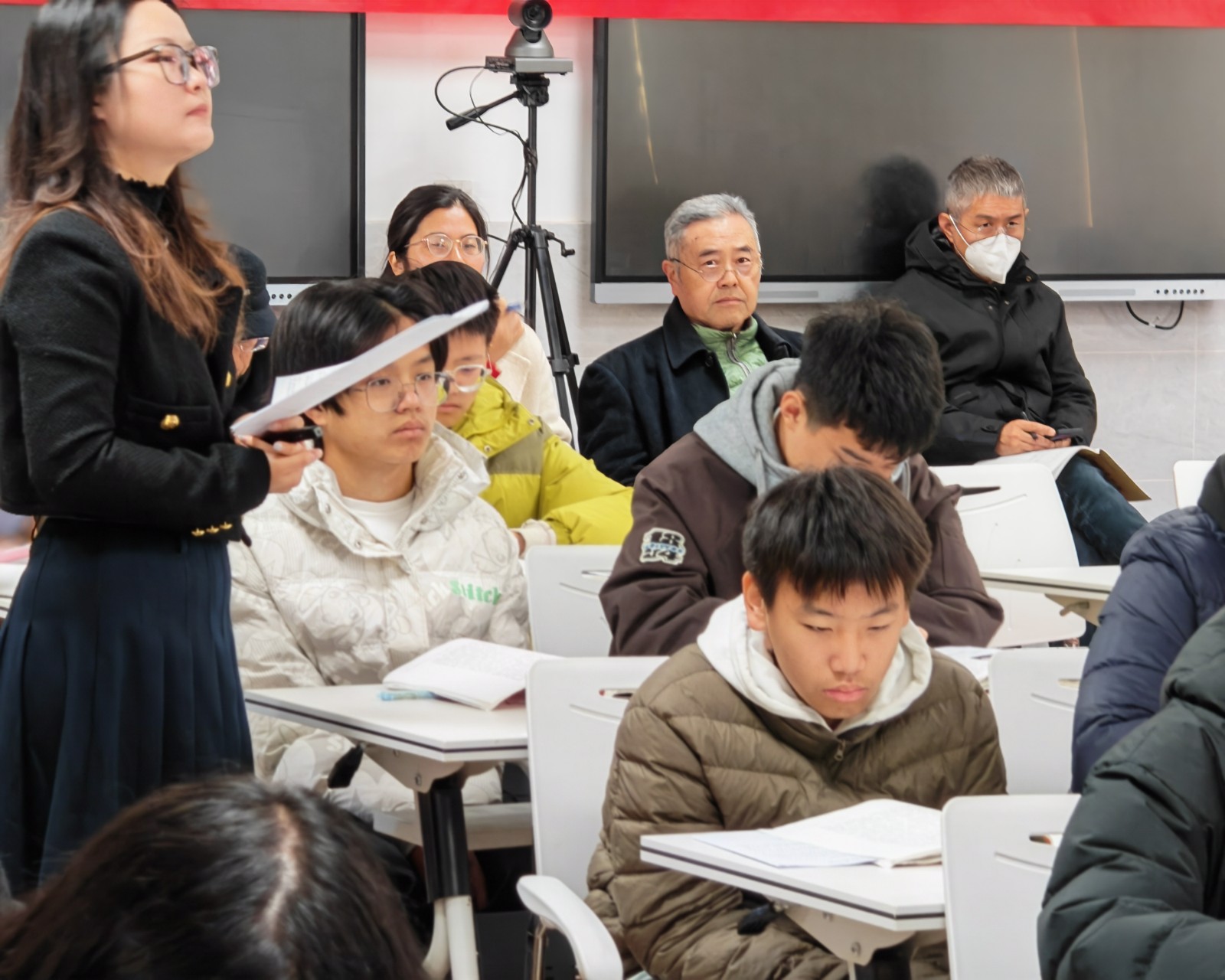 12月2日,无锡市青山高级中学关工委组织退休教师重返校园,参与了一场特殊的四校联合教研活动。这些年龄从六十到九十一岁不等的教育工作者,漫步在既熟悉又陌生的校园里,崭新的教学设备与朝气蓬勃的学生让他们眼中充满欣慰。他们深入语文、历史、生物、体育、心理、数学等多个学科的课堂,时而凝神倾听,时而俯首记录,仿佛回到了曾经的讲台岁月。