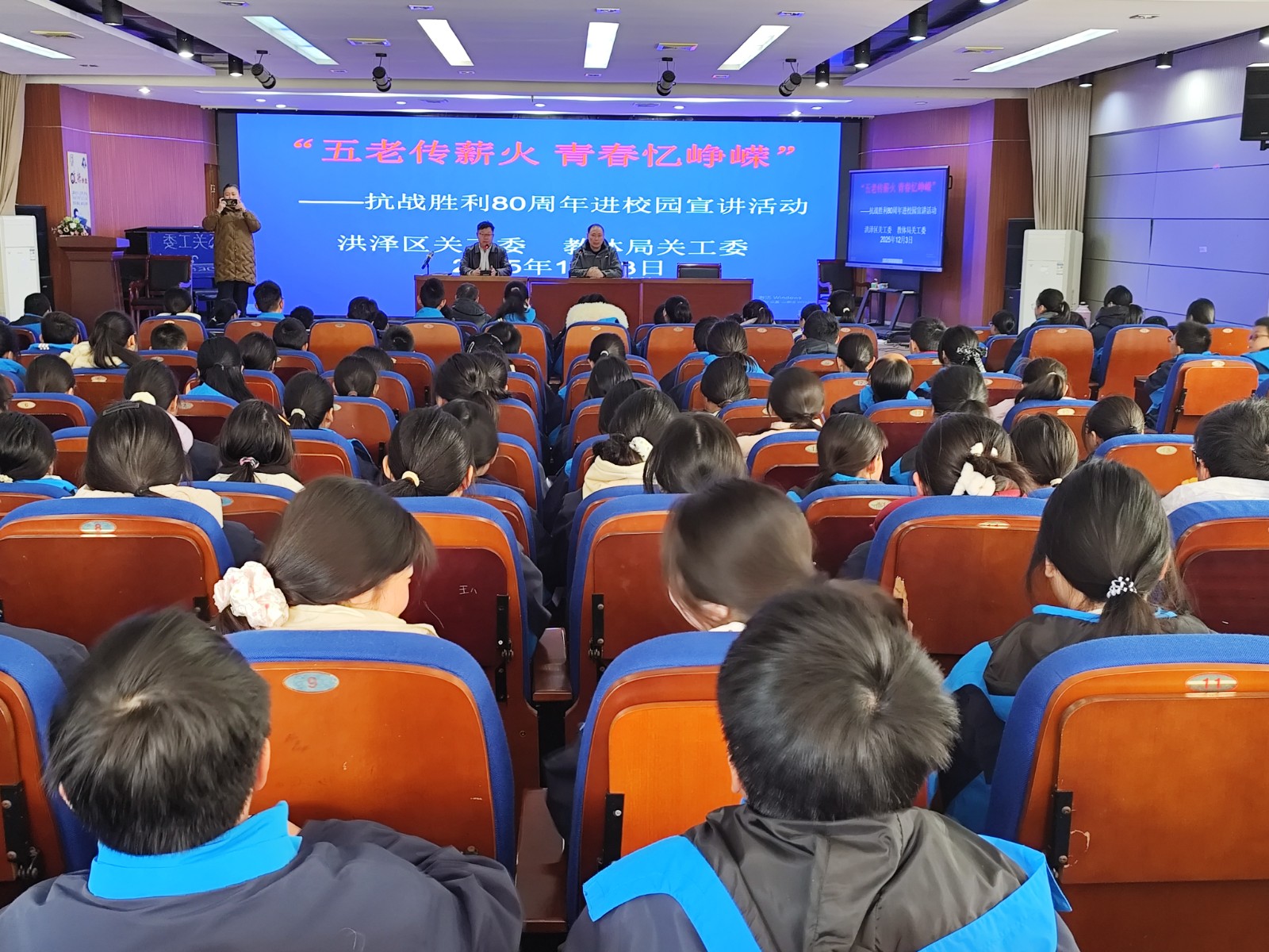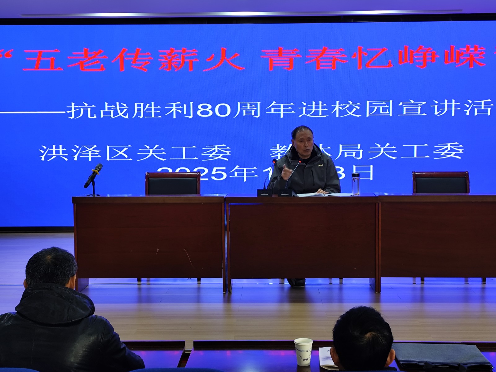 12月3日,洪泽区关工委、洪泽区教体局关工委,在洪泽实验中学,联合举办“五老传薪火 青春忆峥嵘”——抗战胜利80周年进校园宣讲活动。