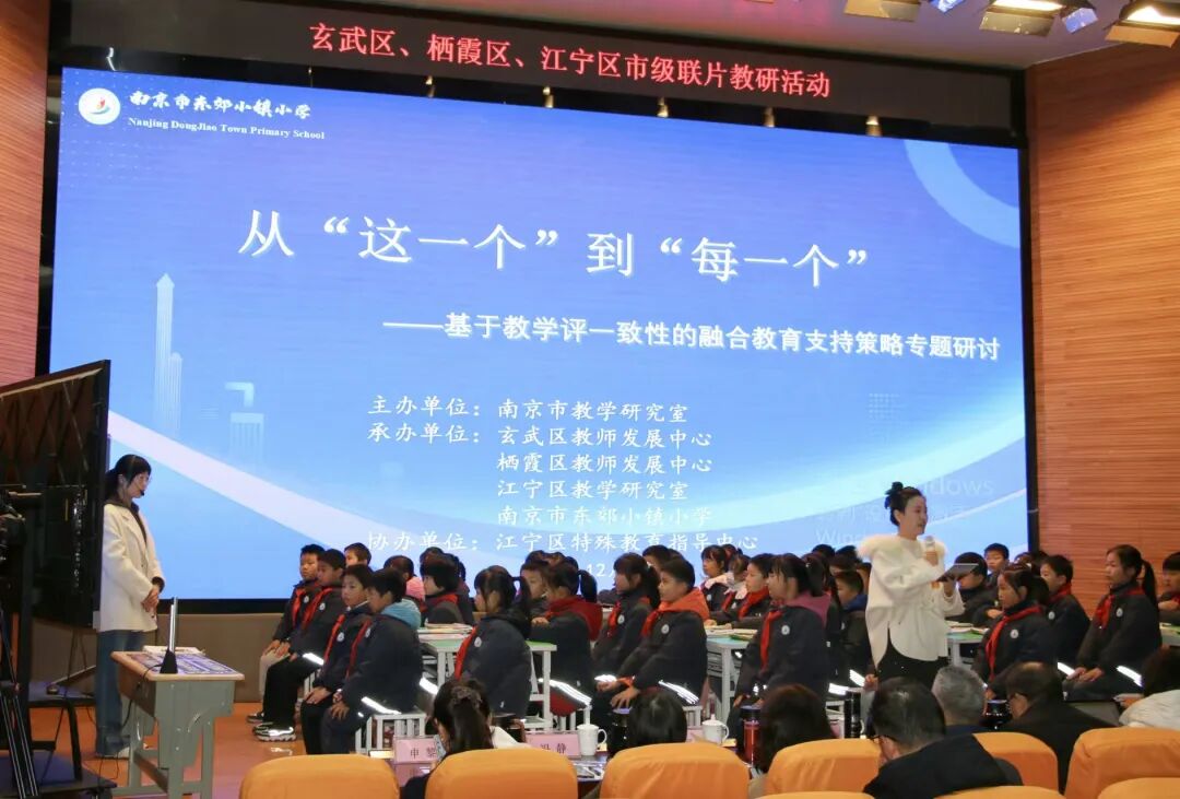 2025年12月23日上午,江宁区、玄武区、栖霞区联合主办的区域融合教育专题研讨活动在南京市东郊小镇小学举行。此次活动旨在深化融合教育课堂实践,推进“教学评一致性”落实,探索特需与普通学生协同发展路径。南京市教学研究室特殊教育教研员宋修玲老师、南京特殊教育师范学院王辉教授、江宁区教育局普教科徐亮副科长、江宁区教研室宫文胜副主任、江宁区特殊教育指导中心张红付校长莅临指导,各区特殊教育教研员与融合教育骨干教师共同参与。