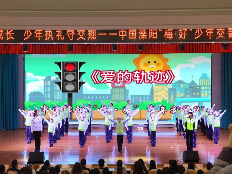 “孕育”篇章中,舞台剧《我要报名》展现了同学们对加入少年交警队的热切期盼。现场,胡栋菁同学以一段活力满满的独舞展现加入队伍的诚意与能力;蒋雨涵、谈妙伊同学演唱《如愿》,赢得台下阵阵掌声,充分展现了少年交警队队员们的多才多艺与青春朝气。