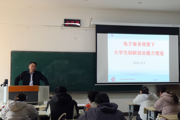 商学院关工委顾海华副教授的创新创业讲座,聚焦电子商务背景下大学生创业能力塑造。他系统梳理了创业计划竞赛的发展脉络,并从德育、创新思维、能力、人格四方面提出创业素养培养路径,鼓励学生“跳出传统思维,以好奇心和探索精神挖掘新机遇”。