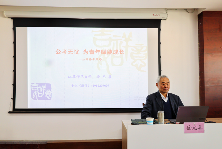 公共管理与社会学院关工委副主任、校关工委“讲师团”成员徐元善教授的《公务员考试备战攻略》讲座,现场座无虚席。作为资深公考专家,他向本院备考学子系统讲解了公考全流程,强调“早准备、重积累、强实践”的备考核心。