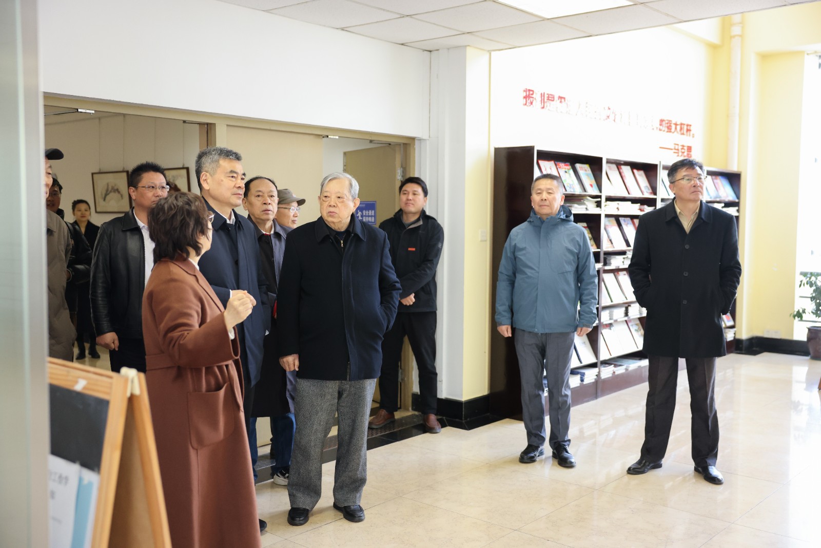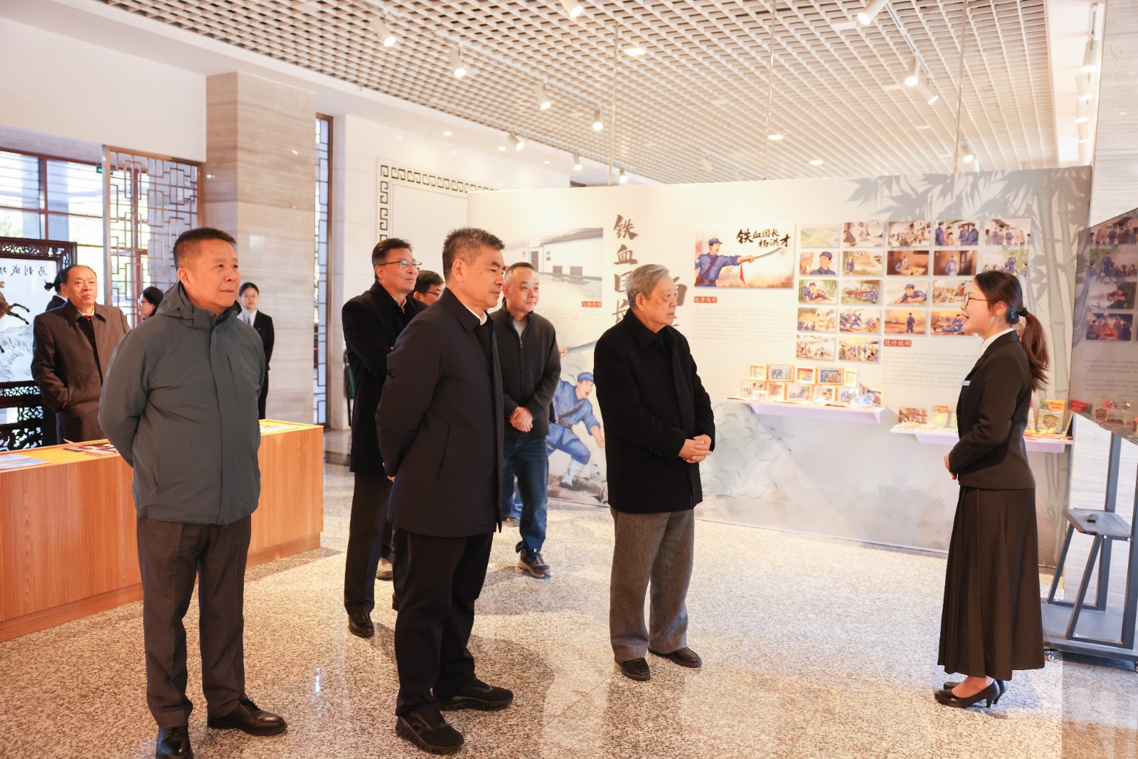 调研组先后前往学校图书馆三楼的承泽书院与设计艺术学院展开实地走访。“承泽书苑”的图书、书架及字画均来自社会各界人士的捐赠,其中图书主要为储江、施平、陈德钧等革命前辈的遗藏,以及无锡市新四军研究会的捐赠。“承泽书苑”时刻提醒着每一位师生:这里的资源凝聚着社会各界尤其是革命前辈们的深沉恩泽。在设计艺术学院,调研组参观了学生红色主题作品展。展览聚焦无锡新四军纪念场馆中的抗战文化资源,深入挖掘其中的典型人物与事件,以青春视角为切入点,运用专业的艺术设计语言与创作理念,设计开发出红色绘本、红色动画、红色文创等艺术作品。同时,展览借助VR、AR、MR、AI等前沿技术,将场馆中的红色故事转化为青年大学生可感知、可参与、可学习、可传播的视觉文本,激励新时代大学生在铭记历史中赓续红色血脉,在砥砺前行中勇担时代使命,让跨越时空的抗战精神薪火相传。调研组对学校紧扣职业院校特色,打造专属关工阵地、推动工作下沉一线、贴近学生的务实做法给予了肯定。