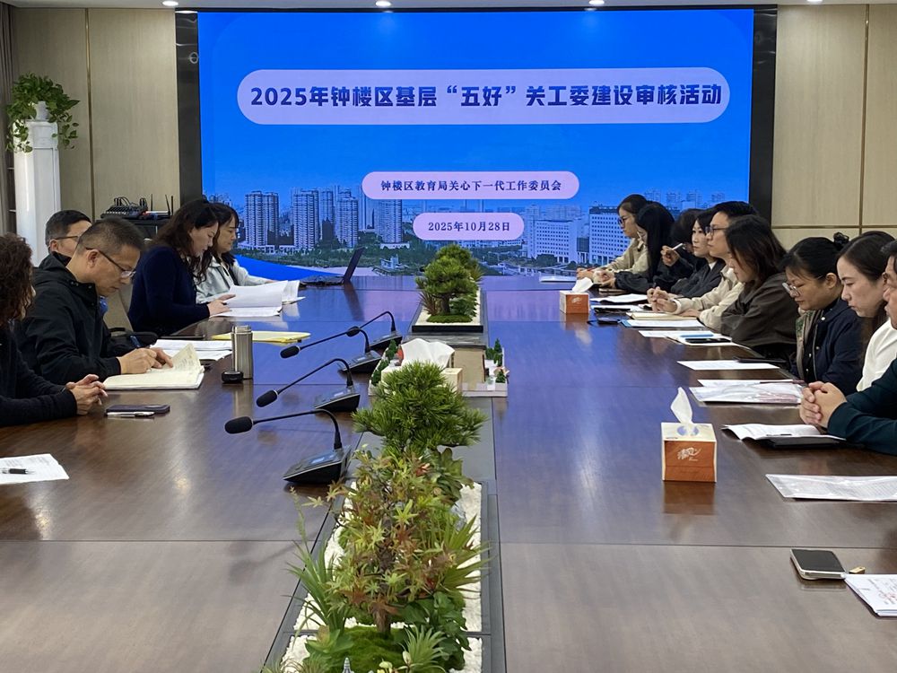 10月28日上午,2025年常州市钟楼区教育局开展基层“五好”关工委建设审核活动。区教育系统关工委所属的各校、各幼儿园关工委常务副主任和秘书长参会。参加本次会议的领导有区教育局副局长、教育关工委常务副主任郭新华、常务副主任蒋正芳(退休),区教育关工委副主任王振清等同志。