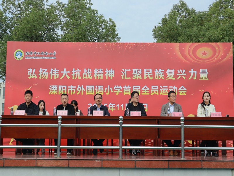 神州大地全运热潮涌动,第十五届全运会“拼搏向上、全民参与”的精神燃动校园。近日,溧阳市外国语小学首届全员运动会隆重举行,4000余名学子、教师及家长齐聚操场,以“弘扬伟大抗战精神,汇聚民族复兴力量”为主题,共赴一场热血与成长的体育盛宴。溧阳市教育局副局长崔恩、溧城街道副主任张华明等领导,社区及家委会代表,全市50余所兄弟小学嘉宾出席活动。