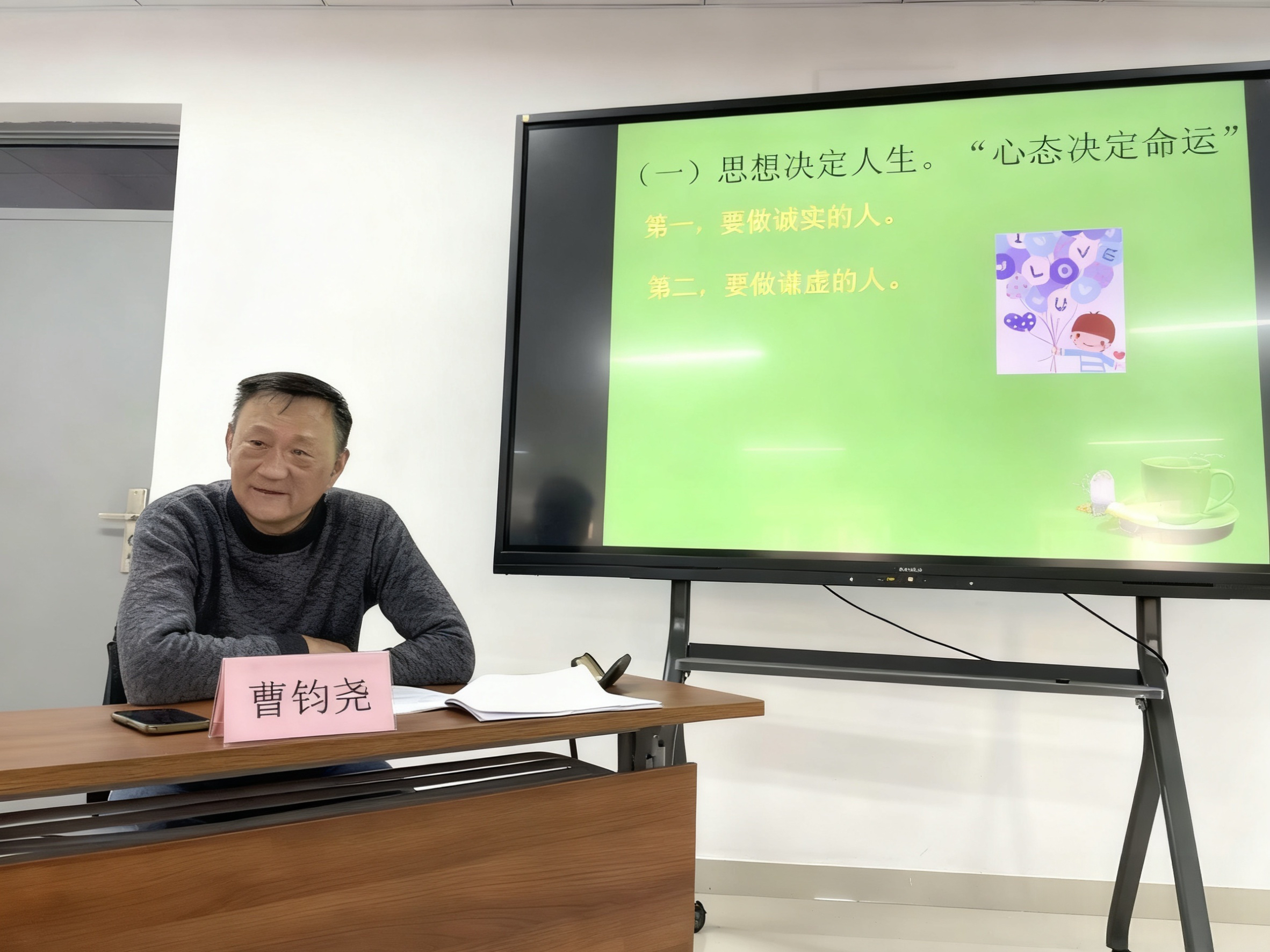 为全面落实二级学院关工委“五好”建设要求,加强对青年入党积极分子的思想引领,11月21日下午,南通科技职业学院生态环境学院关工委特邀校关工委秘书长、退休教师曹钧尧在学校“一站式”学生社区为学院入党积极分子讲授题为“四个学会 促青年学生成长”的专题微党课。