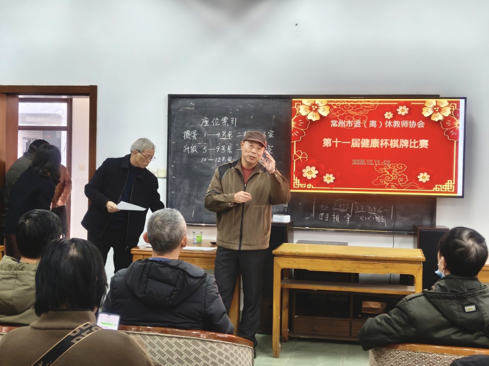 12月11-12日,常州市退(离)休教师协会携手常州市教育局关工委成功举办了一场别开生面的退离休教师棋牌比赛,吸引了70多名退离休教师踊跃参与。本次活动旨在弘扬尊老敬老的优良传统,丰富退离休教师的业余生活,为他们提供一个交流互动、展示智慧与技艺的平台。