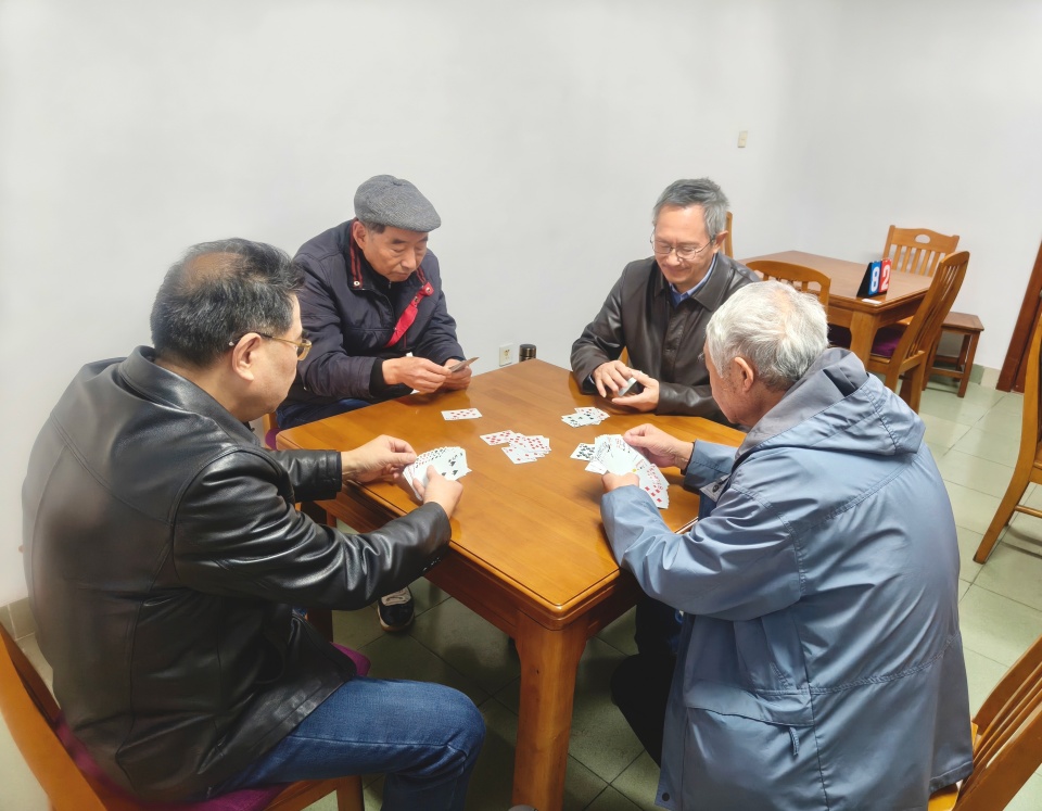 比赛项目涵盖象棋、扑克牌等活动,满足不同教师的兴趣与特长。活动现场,离退休教师们个个精神矍铄,他们或蹙眉深思、谋篇布局,或落子干脆、果敢从容,每一步棋都彰显着精湛娴熟的技艺,更流露着岁月沉淀的智慧与经验。比赛过程紧张而激烈,现场气氛却十分融洽,欢声笑语不断。在象棋比赛区域,老师们目光专注,每一步棋都经过深思熟虑,沉稳的布局和犀利的进攻引得周围观众阵阵赞叹。而在扑克牌比赛场地,老教师两两组合,小组配合默契,精准的记牌与巧妙的出牌策略,让围观者不禁心生钦佩。