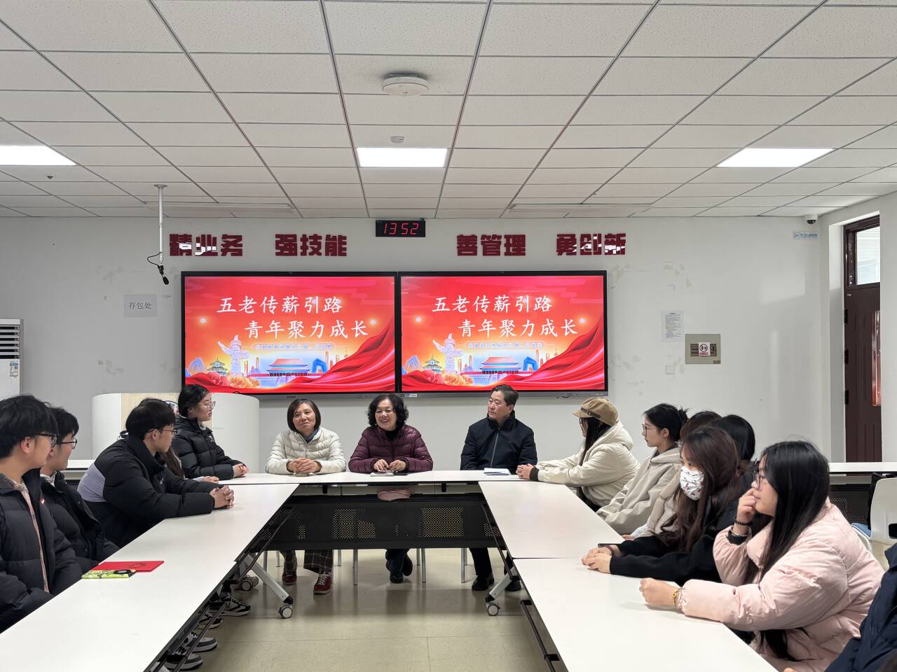 12月17日,南京交通职业技术学院运输管理学院关工委联合分团委组织召开“五老传薪引路 青年聚力成长”交流座谈会。学院关工委常务副主任徐爱萍、关工委委员夏志勤和黄体允老师,分团委书记刘宇老师,以及30余名学生代表共同参会。会议由学院关工委学生委员、秘书长赵一博主持。