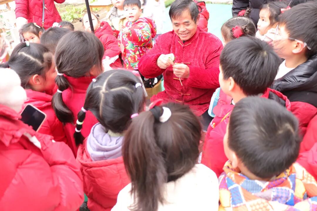 笔墨迎春润童心,非遗传承暖校园。孩子们提笔书写春联与“福”字,在一撇一捺中感受书法韵味;更有亲子携手共书吉祥,传递温情与祝福。吹糖人非遗展演深受欢迎,传承人现场展示糖塑技艺,孩子们近距离观摩、亲手体验,在糖香四溢中感受非遗匠心。