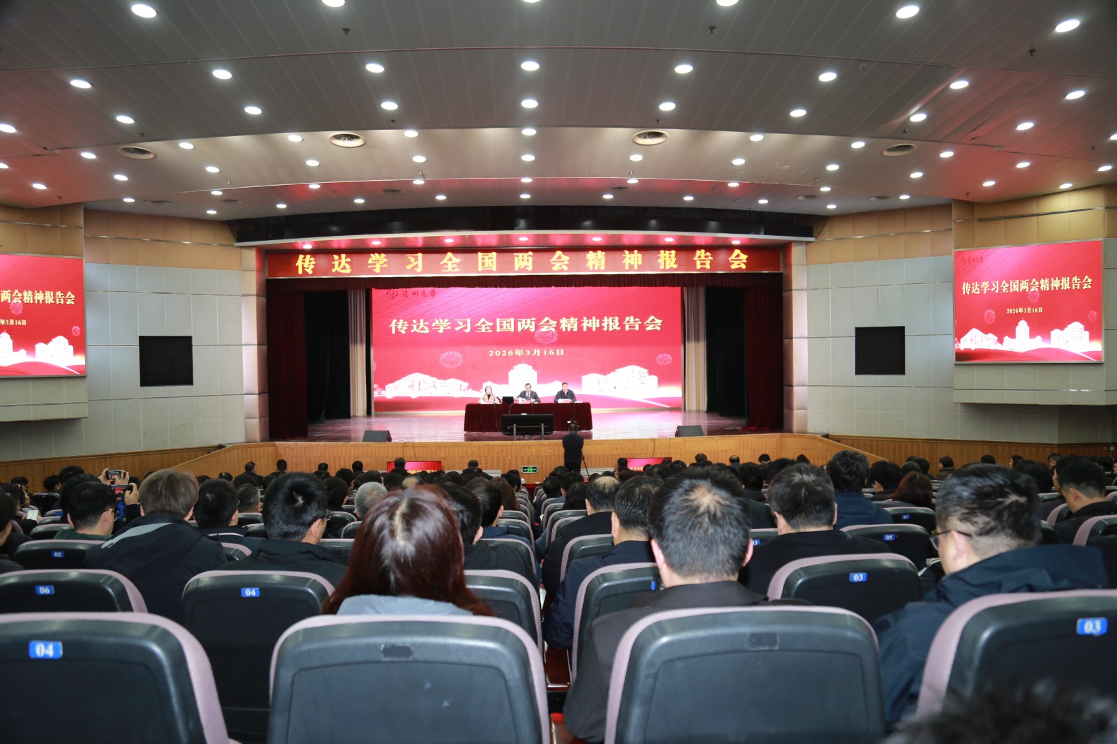 3月16日,扬州大学召开传达学习全国两会精神报告会。全国人大代表、校党委书记丁建宁以《深入学习贯彻全国两会精神 奋力谱写“十五五”高质量发展新篇章》为题传达十四届全国人大第四次会议精神。全国政协委员、副校长龚卫娟传达了全国政协十四届四次会议精神。校长刘巧泉主持会议并作总结讲话。校关工委组织“五老”代表参加会议。