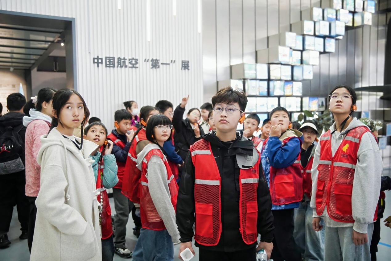 小朋友们首先走进扬州航空馆,亲手体验航模制作与模拟飞行,在趣味操作中初探蓝天梦想,感受航空科技的神奇力量;随后走进扬大校园,在数字媒体实验室沉浸式探索非遗与AI的跨界融合,解锁传统文化的科技表达;在校史馆里,聆听百廿扬大的文脉故事,感悟学府底蕴;在标本馆中,近距离观察神奇的自然生命,激发对自然科学的探索热情。