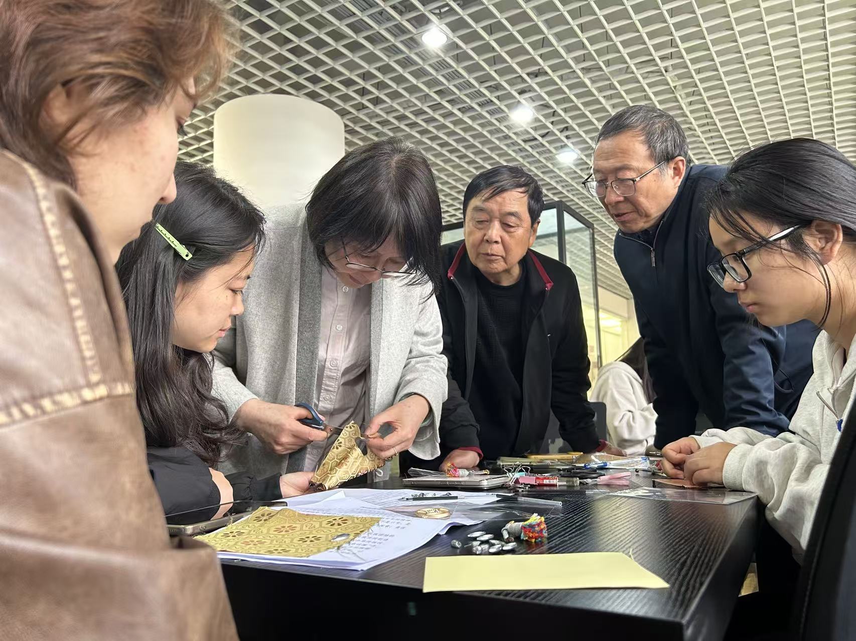师生分组参与宋锦体验,由传承人现场指导,亲手制作非遗小作品,感受传统技艺的独特魅力。体验结束后,参加活动的阿丽耶·玉散同学作为少数民族学生代表交流了参与活动的感想:宋锦的纹样里藏着中华文化的包容,就像我们各民族文化虽各具特色,却都同属中华文化的沃土。张謇先生一生致力于文化传承与民生改善,这份追求与我们传承非遗、守护文化根脉的初心不谋而合。这次活动不仅是感受传统技艺的温度,更是民族团结的跨越时空的精神对话。