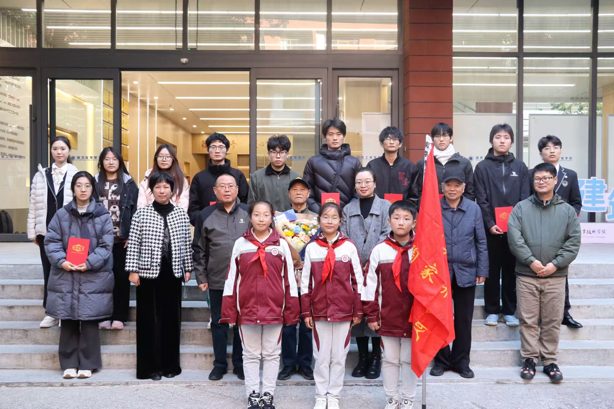 建筑工程学院党总支书记张丽君宣读《建筑工程学院关于颁发“陶家齐烈士学生助学金”的决定》。在庄重的气氛中,陶和寿老先生亲自为第一期受资助学生颁发证书。学生代表向陶和寿老先生敬献鲜花,表达了对革命后代的崇高敬意与感激之情。