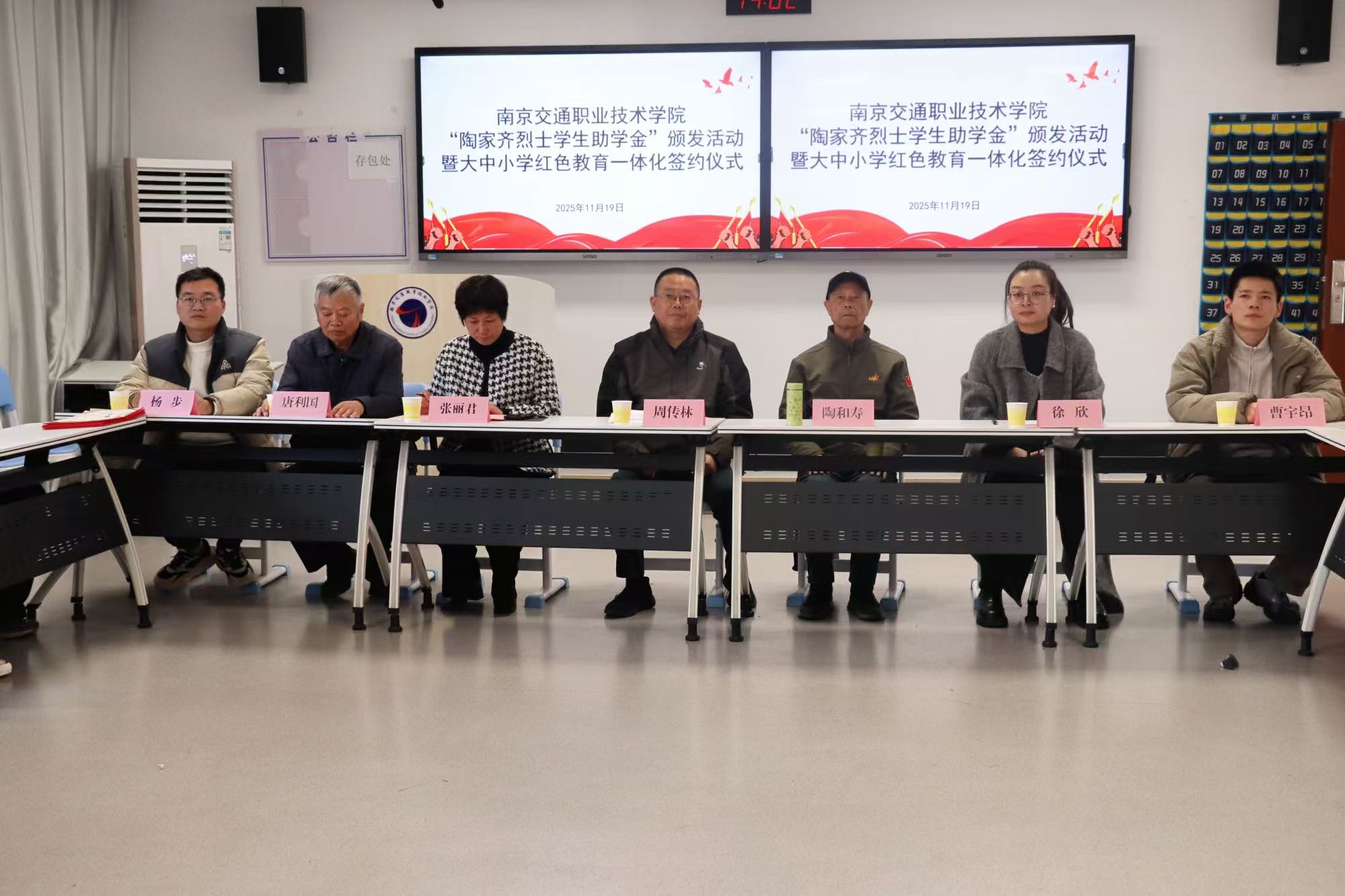 11月19日,南京交通职业技术学院建筑工程学院关工委在广宇楼410开展“陶家齐烈士学生助学金”颁发活动。学校关工委常务副主任周传林,“雨花英烈”陶家齐幼子、南京交通职业技术学院校外辅导员、关工委校外育人导师陶和寿,建筑工程学院关工委全体成员出席活动。